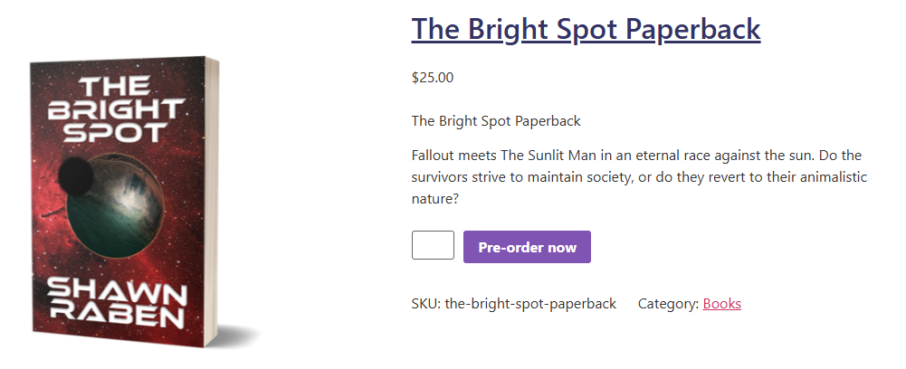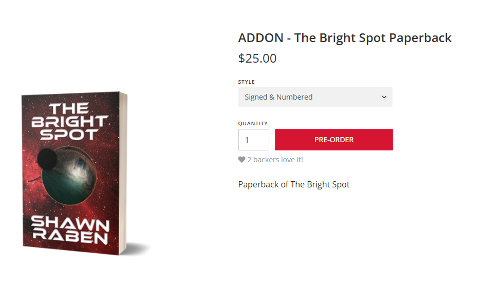 The other reason why I will not participate in this campaign is because of The Bright Spot. I know I collected money nearly a year ago to fund the production of this book. Trust me, I want this book to be published so badly, but I think it would be a disgusting display if I started another campaign, asking for help funding another project before I even deliver on the first! The three options I have are: 1) Rush the production of The Bright Spot so it can be published before I start another campaign. 2) Do the campaign anyway and collect more money before I deliver on the first book. 3) Delay the Bright Spot (to get it done right) and not do the campaign.